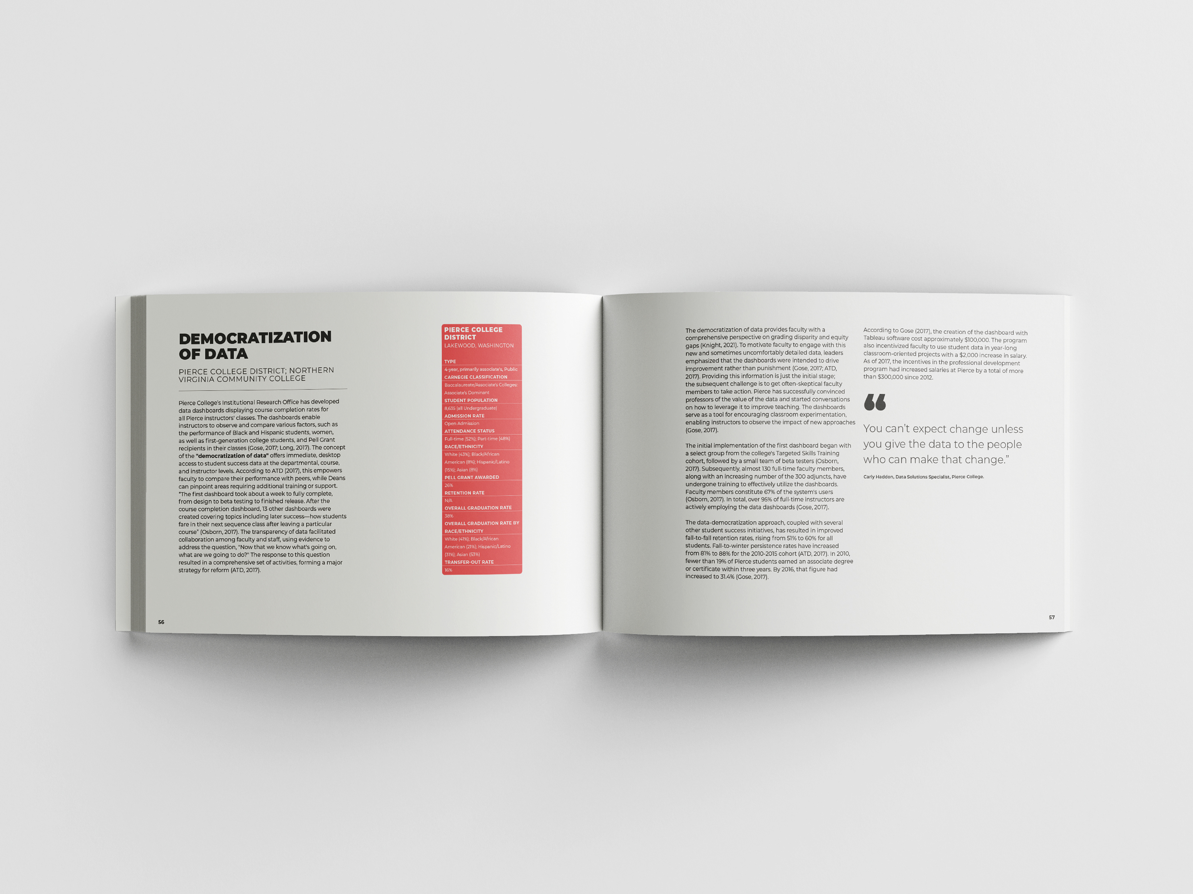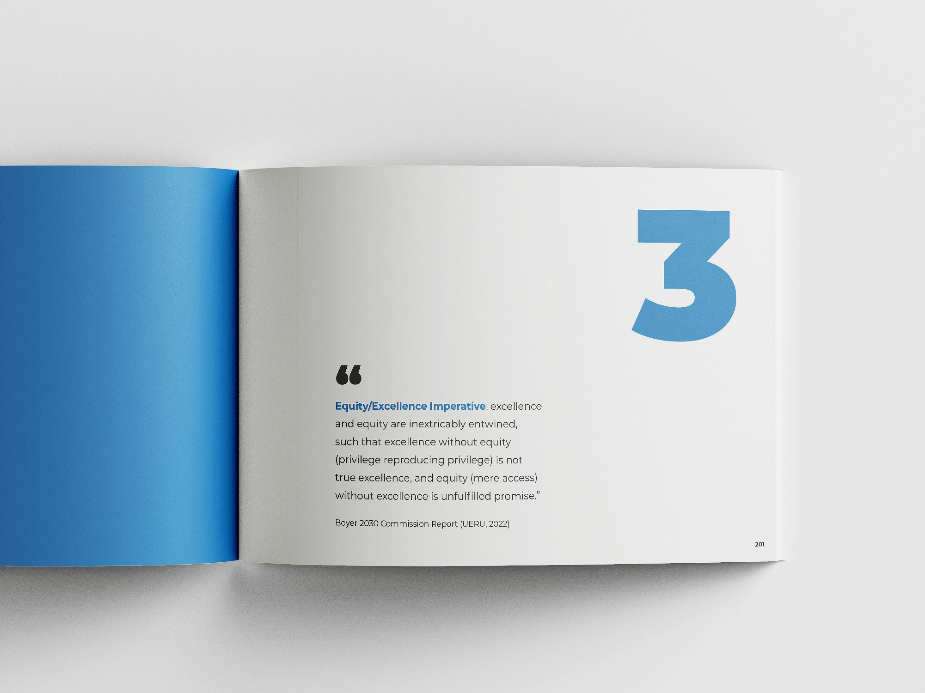 This 400-page idea book explores college student retention and success through a thoughtfully paced read, emphasizing elegant typography, generous white space, and intentional layout design.