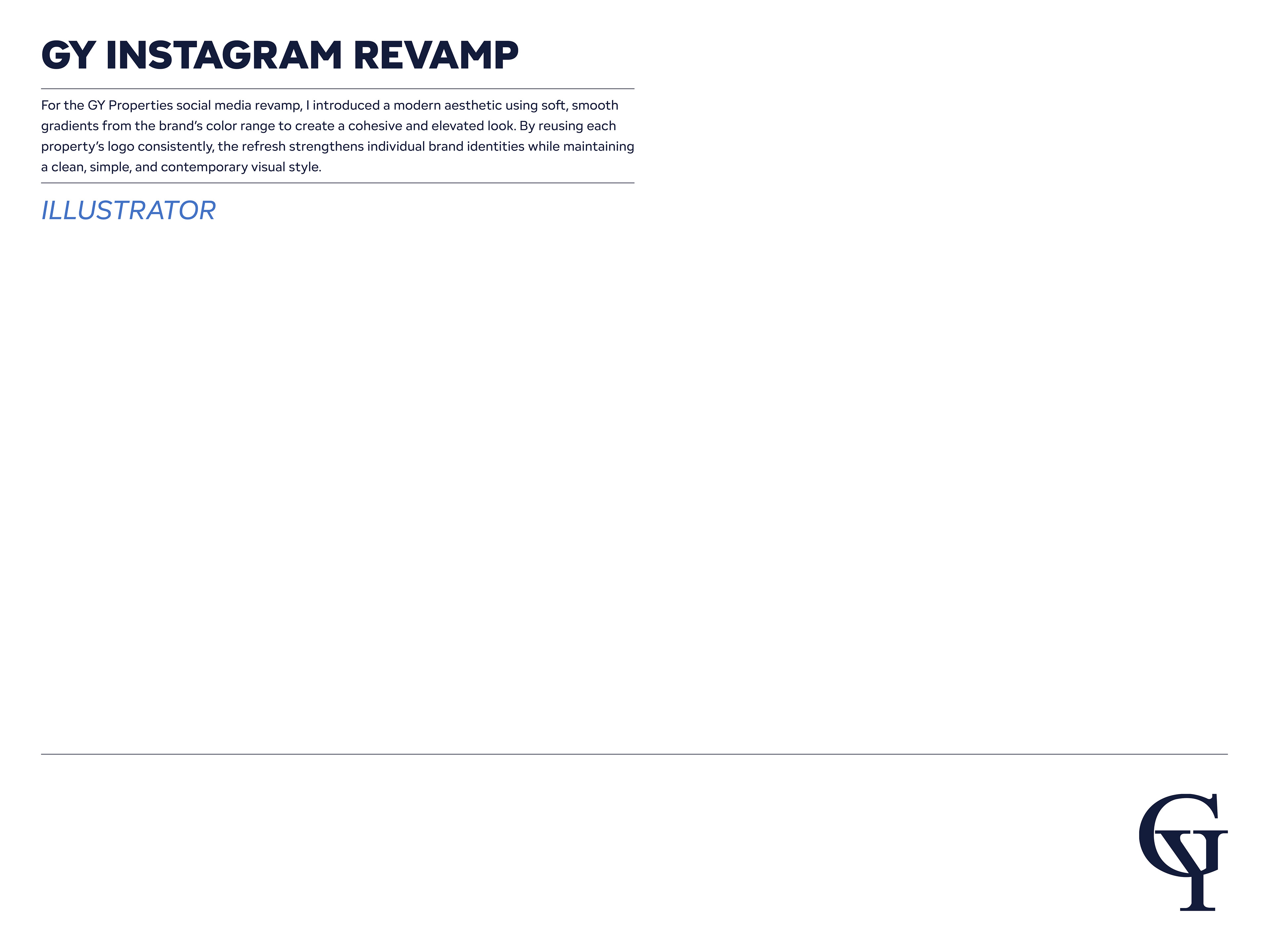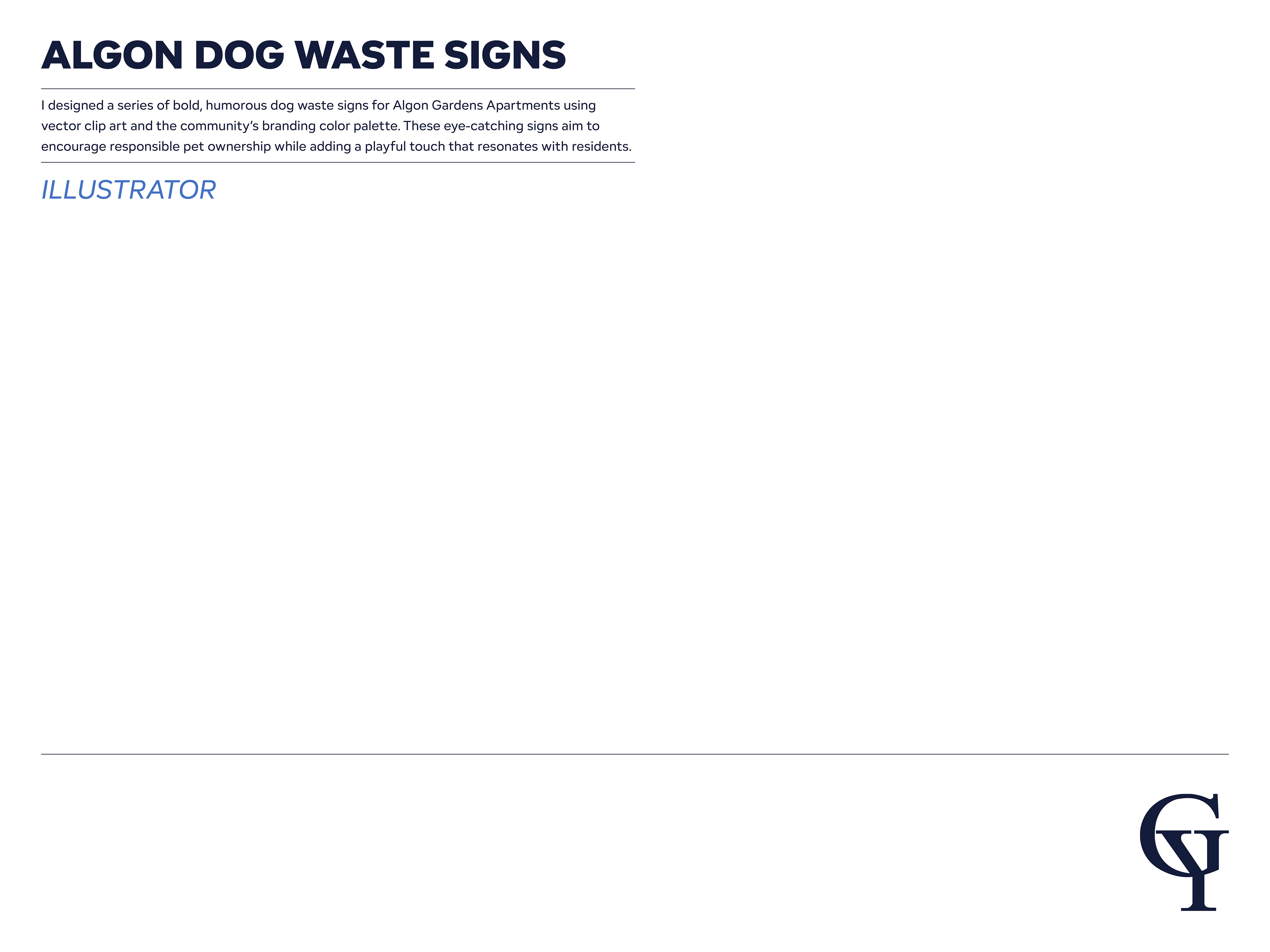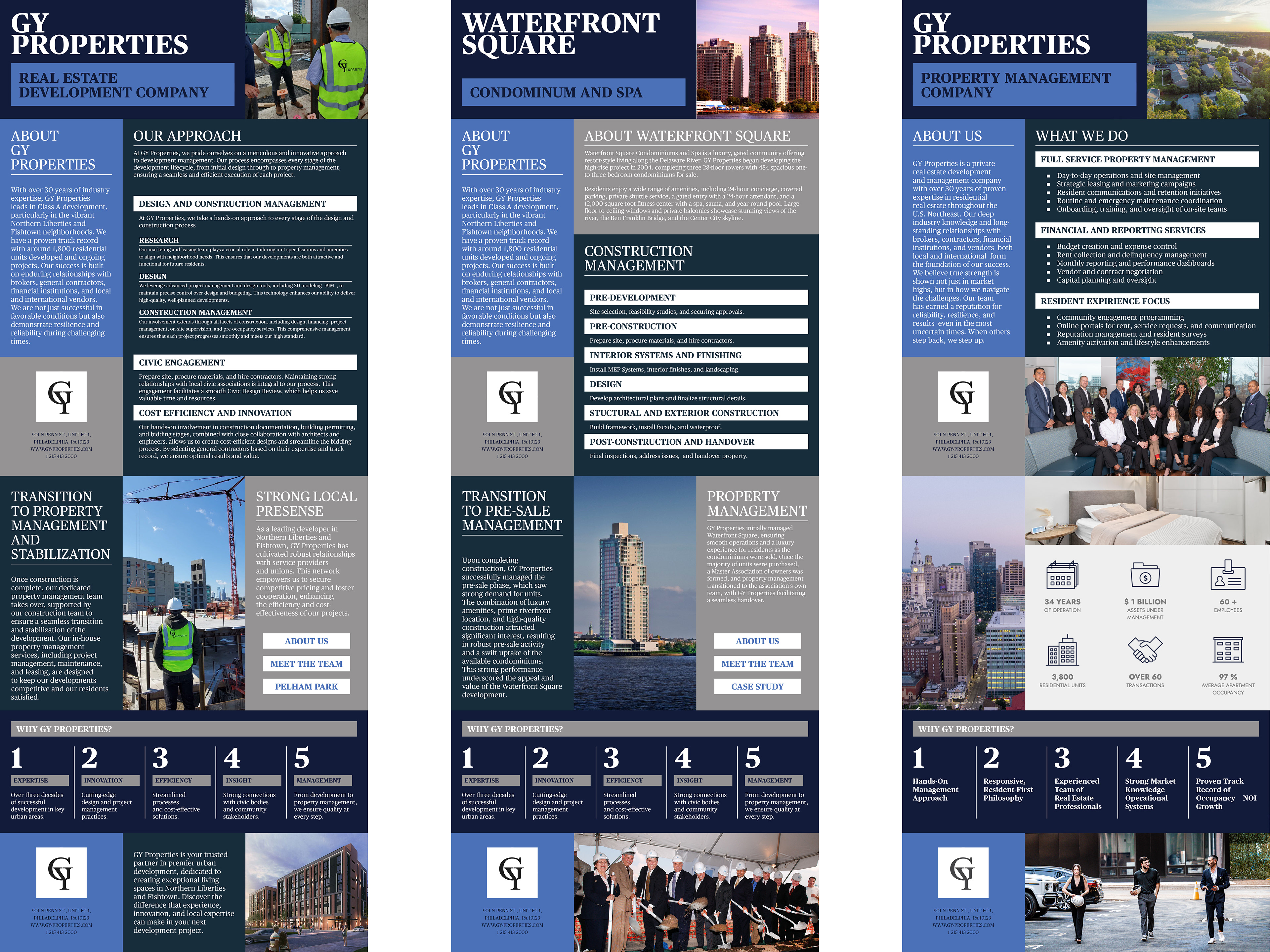 As a Graphic Design Intern at GY Properties, I collaborated with the marketing team to create and refine visual materials—such as signage, brochures, newsletters, websites, email signatures, social media posts, branding elements, and merchandise—for multiple residential real estate properties within the GY portfolio.