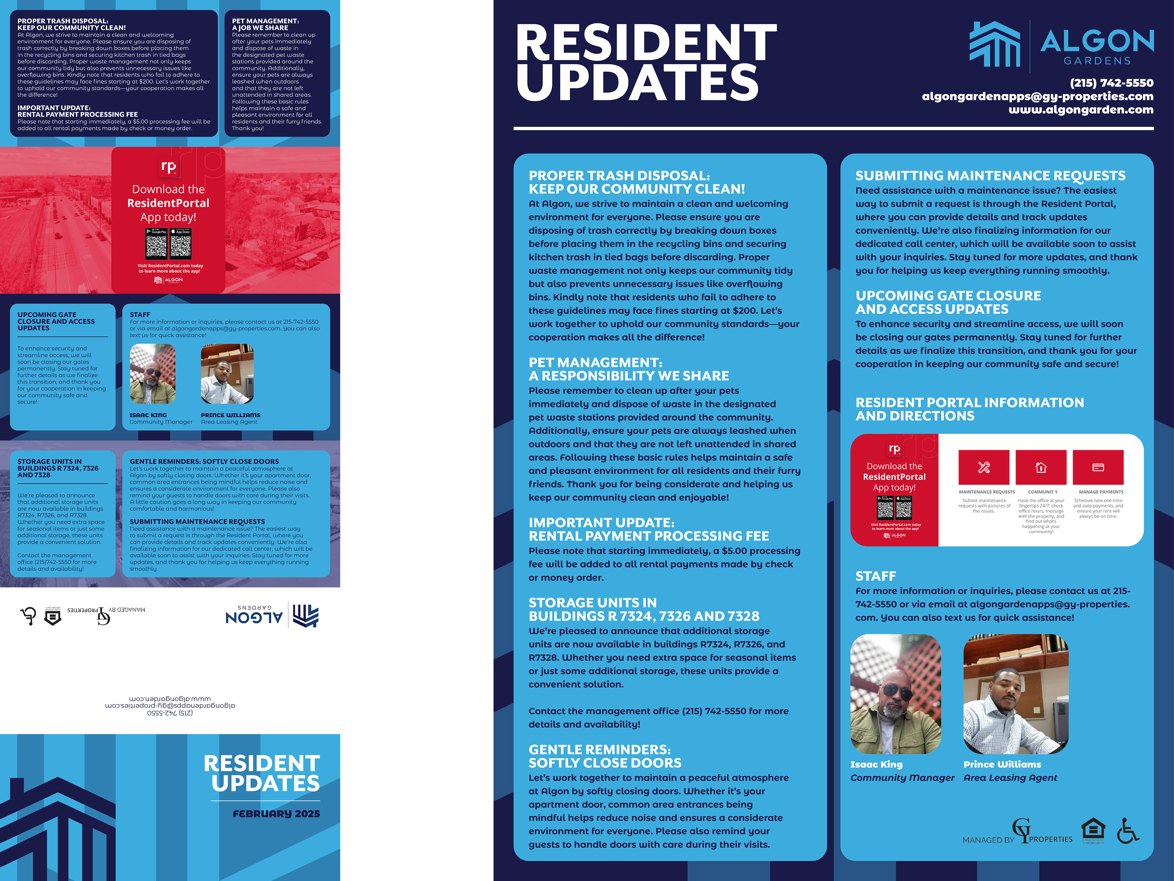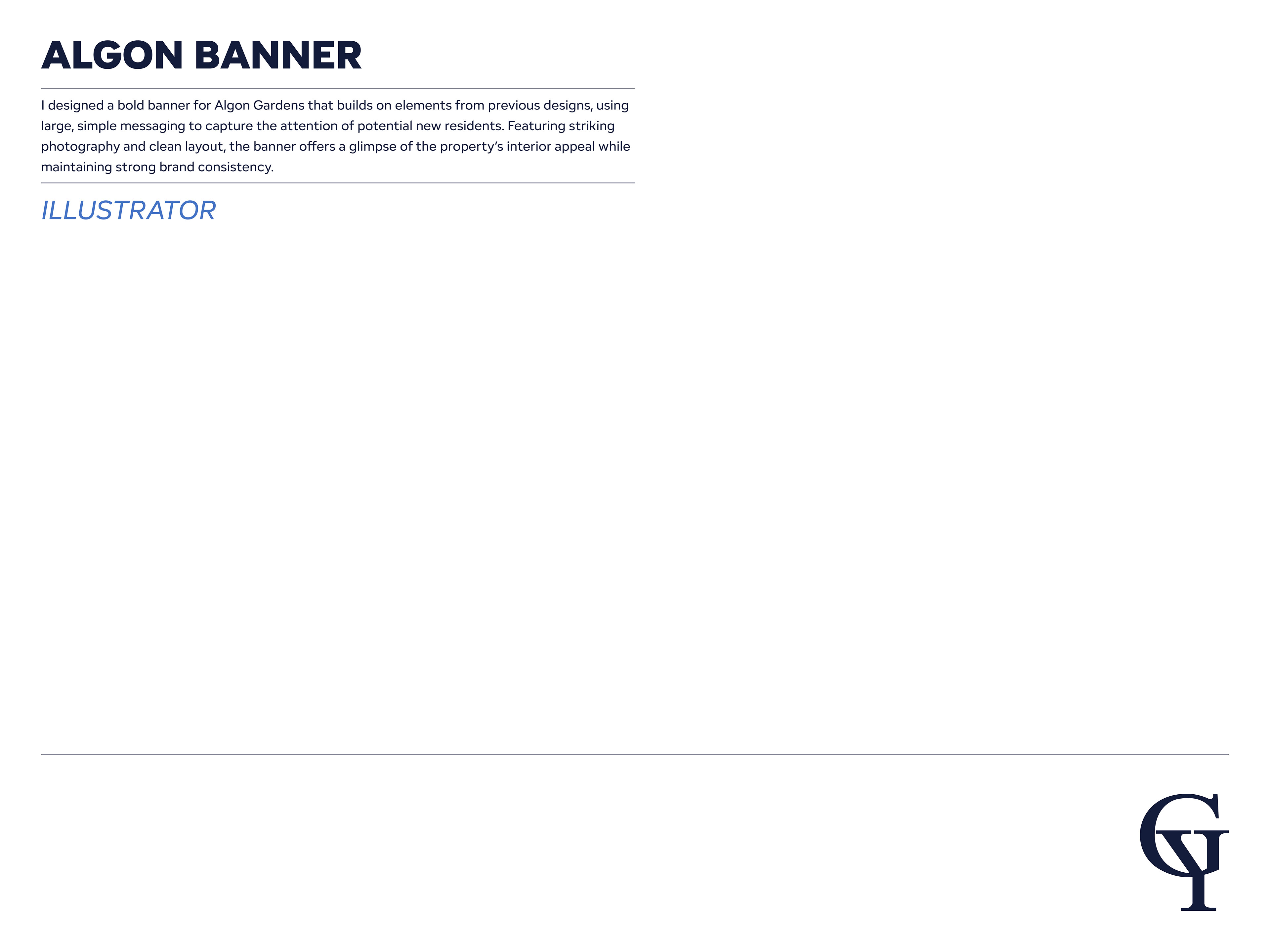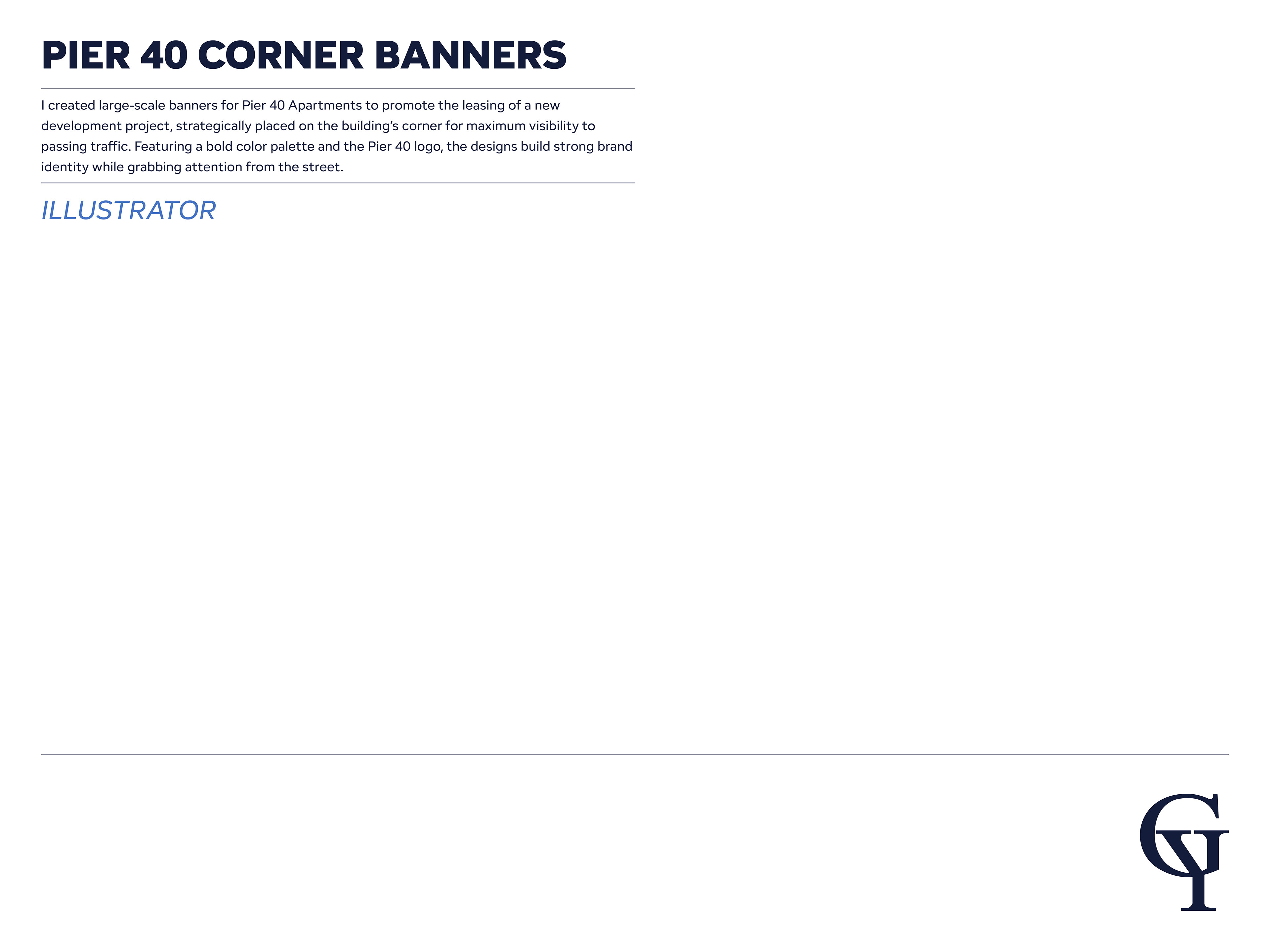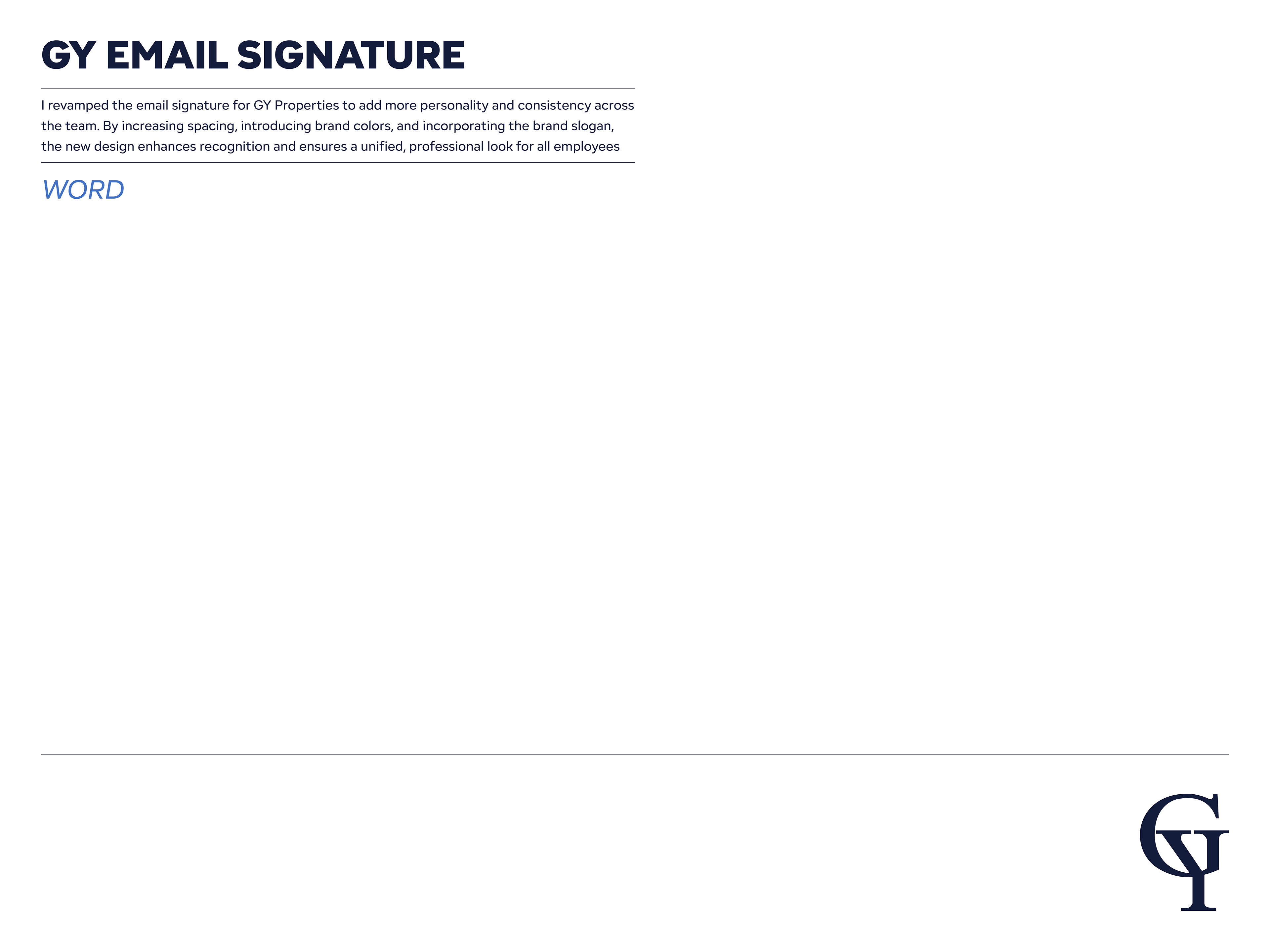 As a Graphic Design Intern at GY Properties, I collaborated with the marketing team to create and refine visual materials—such as signage, brochures, newsletters, websites, email signatures, social media posts, branding elements, and merchandise—for multiple residential real estate properties within the GY portfolio.