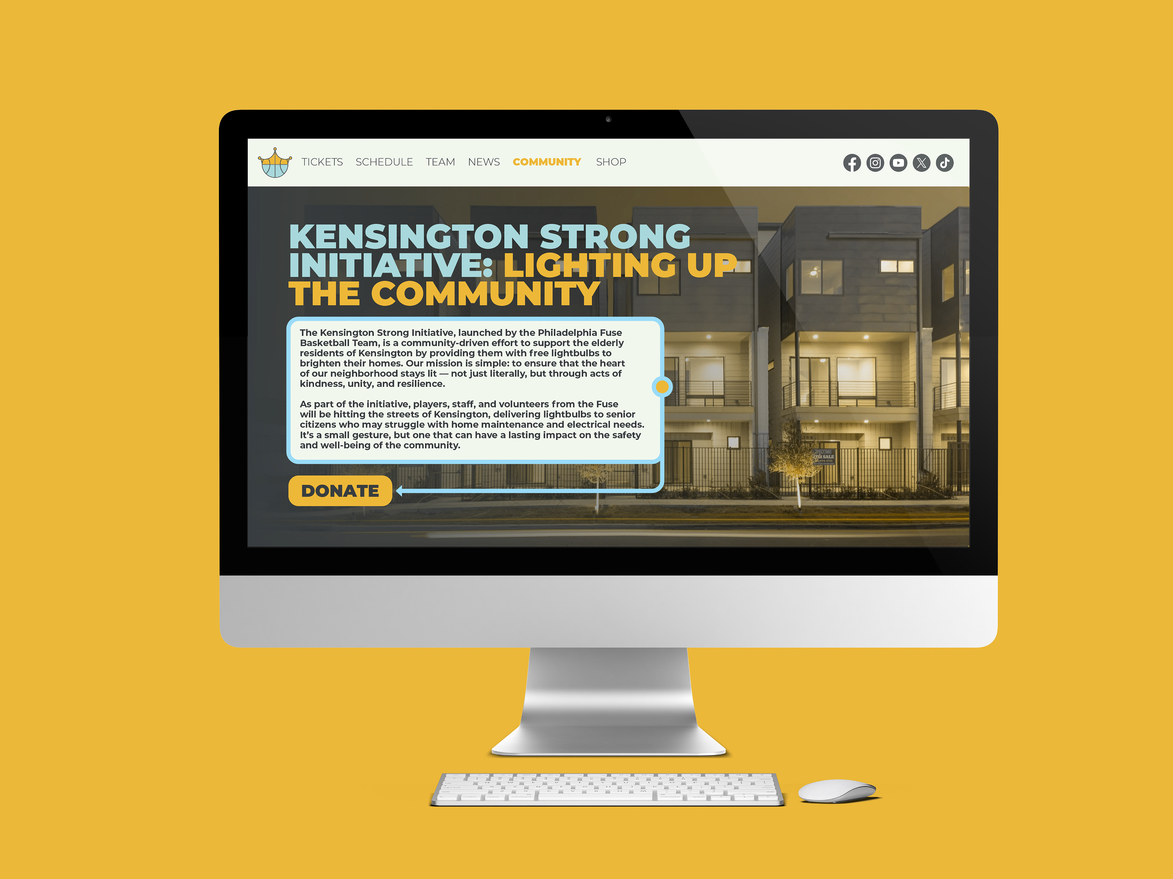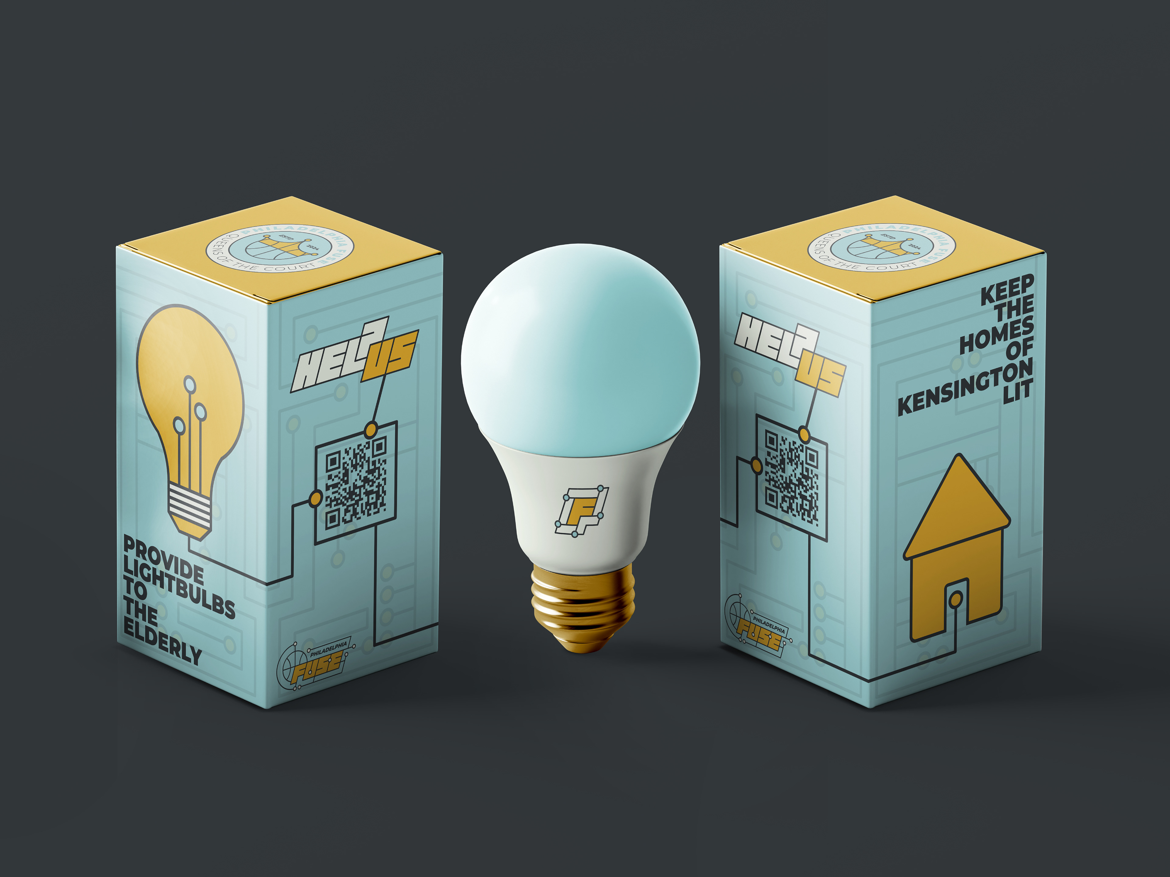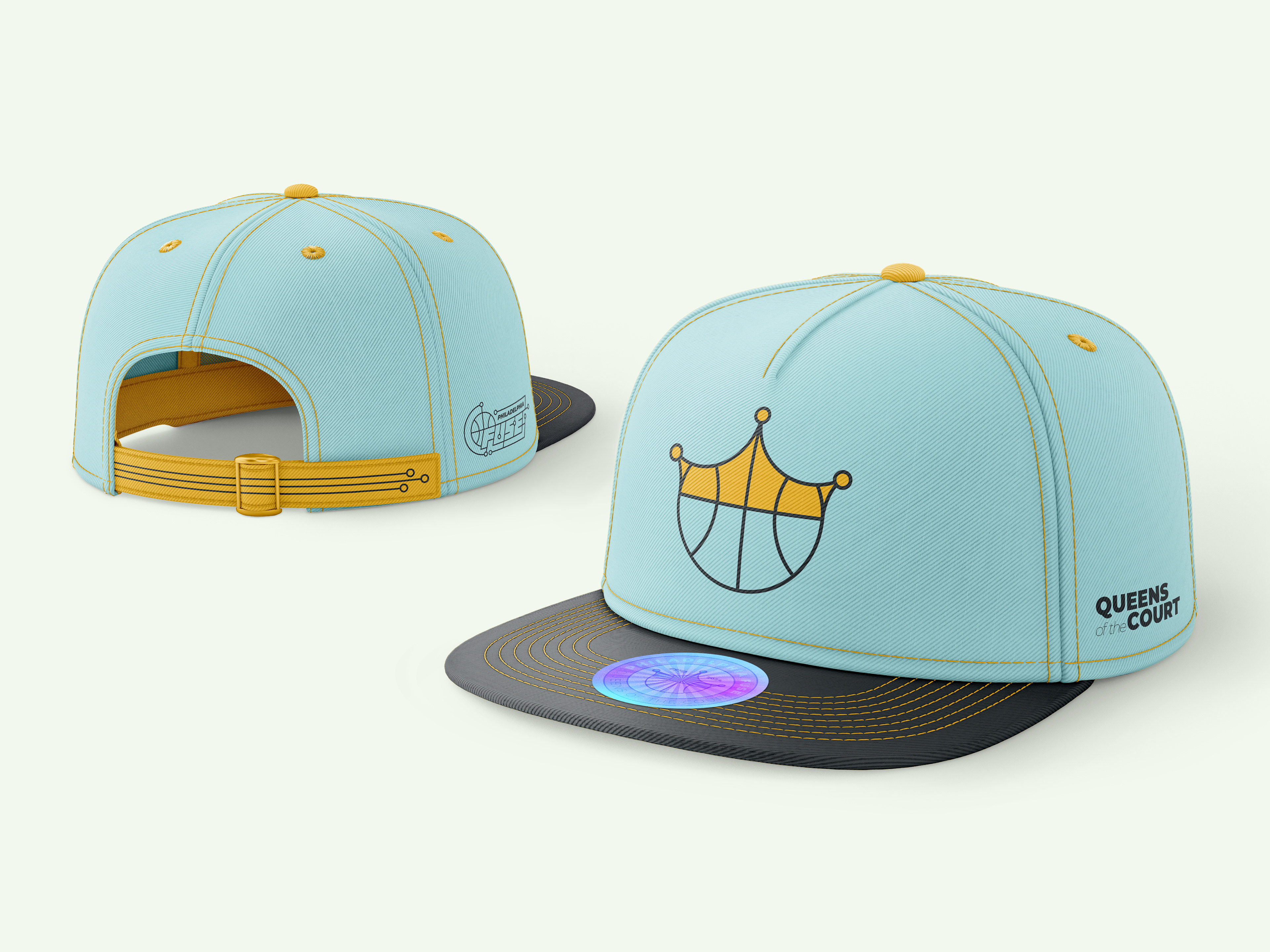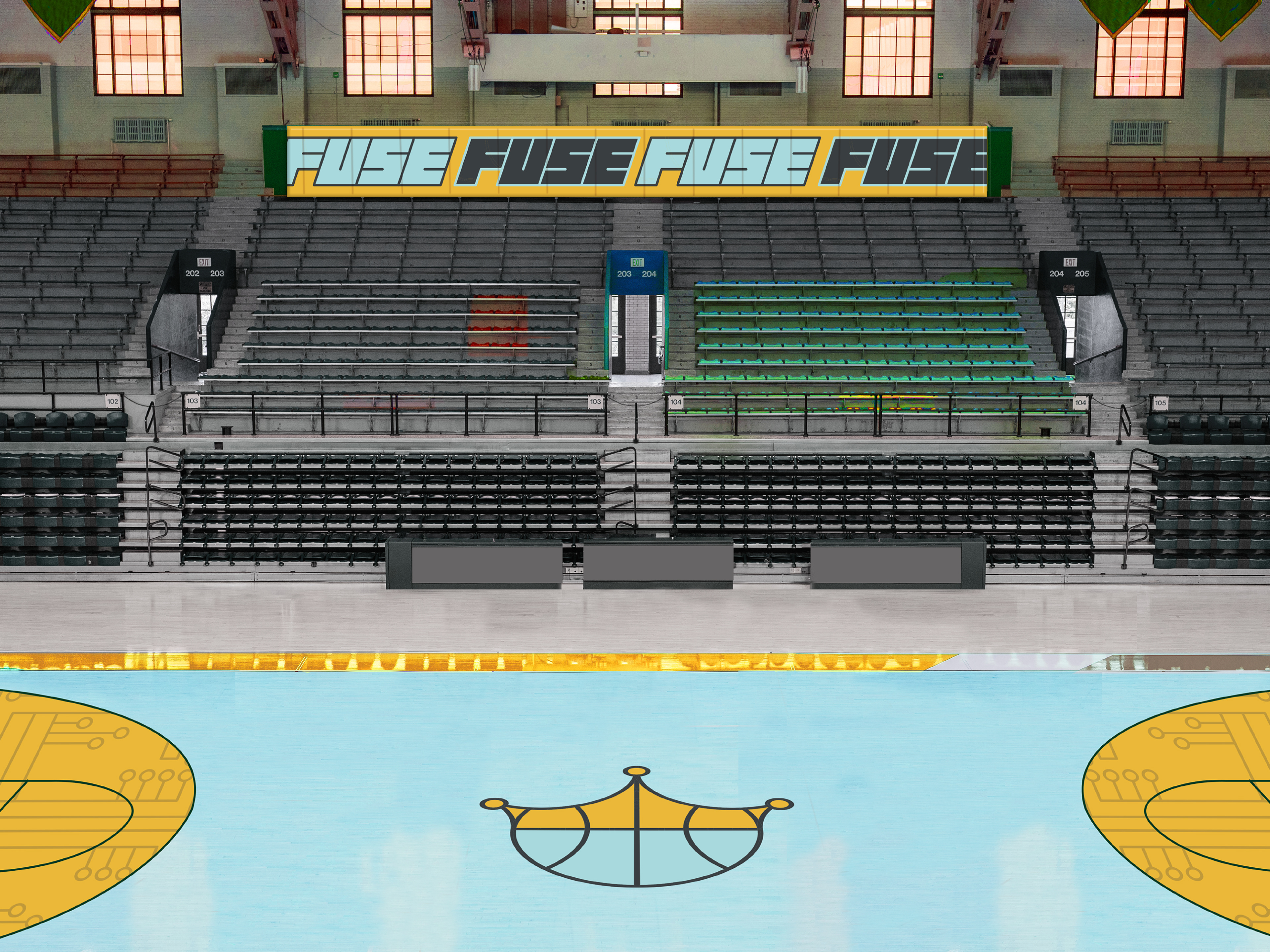 Philadelphia Fuse is a WNBA team focused on revitalizing Kensington, with bold circuit- and crown-inspired designs and handmade typography symbolizing strength and renewal.